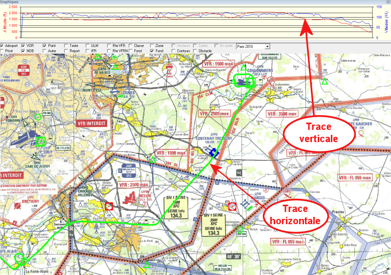 Votre fichier "trace" de Sky-Contact sera analysé tant sur le plan horizontal que vertical. Il sera mis en corrélation avec votre projet de navigation initial (log de nav), avec les espaces aériens traversés et si possible avec vos appels radios.