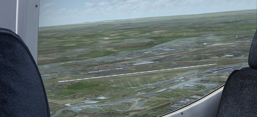 Puis nous redécollons pour Le Mans (LFRM). Navigation à vue, mais rien de difficile, la route étant jalonnée de petites plateformes. Puis nous arrivons en vue du Mans.